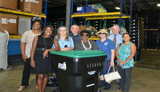 To showcase the new roll carts and educate the public about the new program, Orange County District 6 Commissioner Victoria P. Siplin joined community leaders and several representatives from area neighborhood associations for a tour of Rehrig Pacific Co.’s Orange County manufacturing facility.
